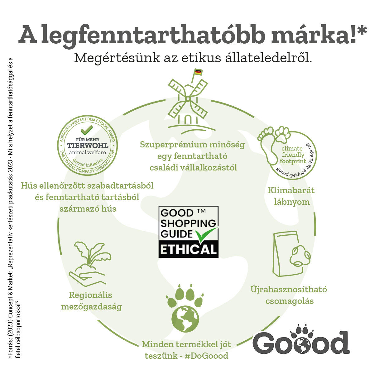 - 73% eredeti hústartalom (1 kg szárazeledelben 730 g csirkehús)