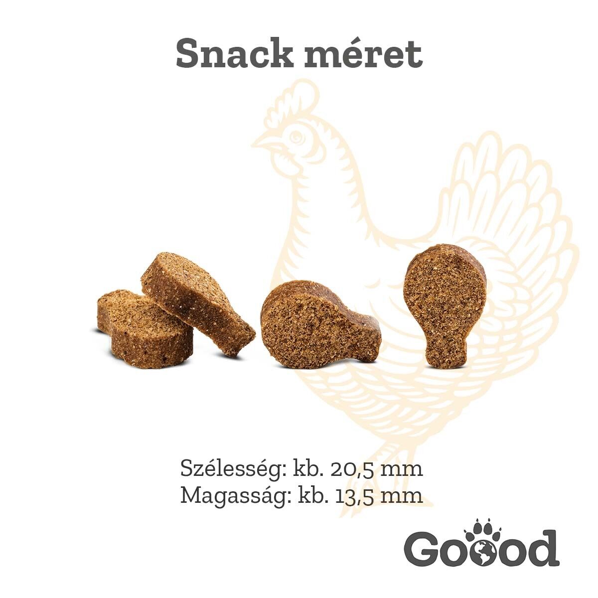 Szabadon tartott csirkéinket kizárólag természetes takarmánnyal etetjük. Ez az ízén is érezhető. Az értékes teljes kiőrlésű gabona energiát biztosít az étkezések közötti időszakokban. A Soft Gooodies könnyen emészthető. Nem használunk adalékanyagokat, mint például cukor, mesterséges színezék, aromák vagy tartósítószerek. Ehelyett a kiváló minőségű összetevők természetes erejére támaszkodunk. A Goood csirkét és paszternákot tartalmazó, csirkecomb alakú falatai szintén jót tesznek az emésztésnek és az anyagcserének.